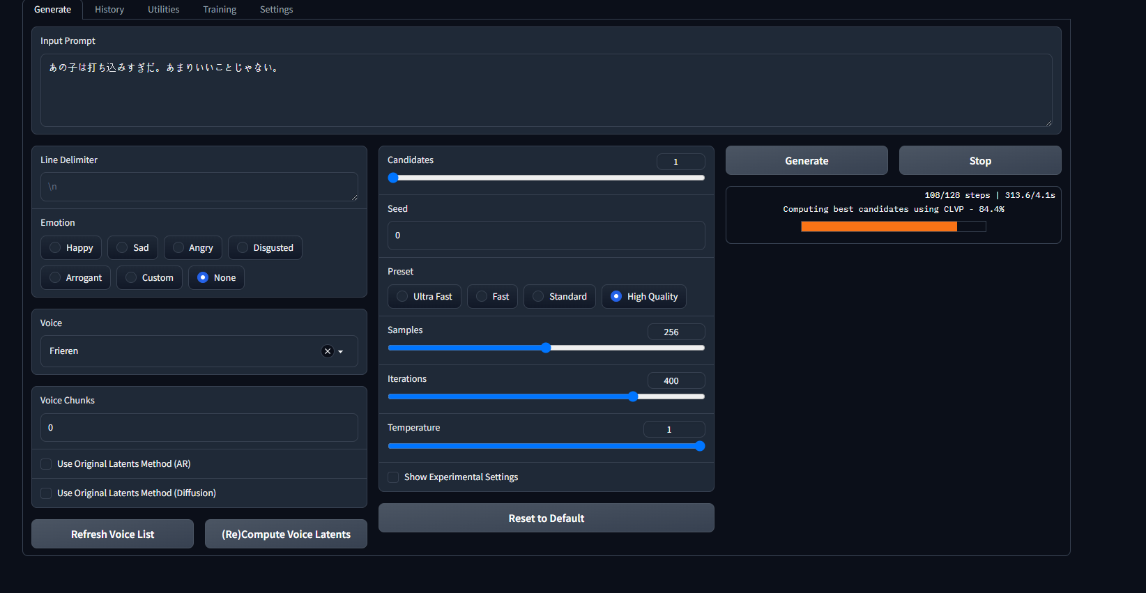 이제 Voice 모델을 Frieren으로 해주고 생성을 눌러주면