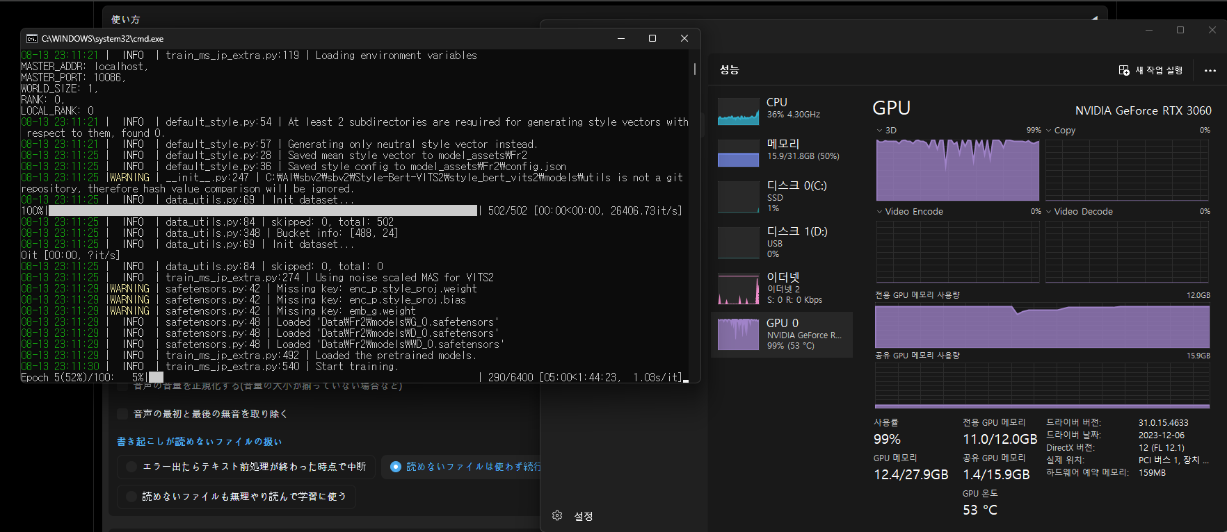 혹여나 싶어 개인컴의 3060을 믿고 진행을 하였으나.
