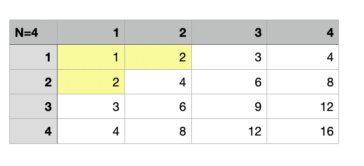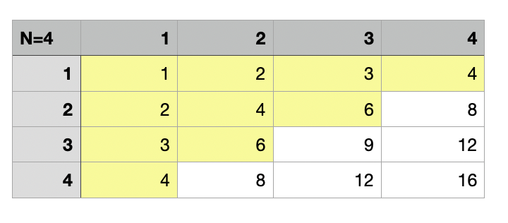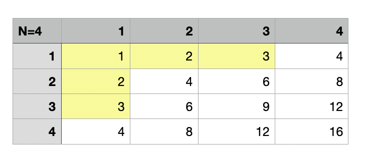 밑에 그림을 보면 5 이하라 한들 N이 4이기때문에 1행에서의 갯수는 min(5//1, 4) = 4개가 된다