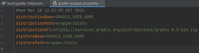 원래 gradle-8.0-bin.zip으로 되어있던 것을 JDK21을 사용하기 위해 8.5로 바꾼 모습이다.