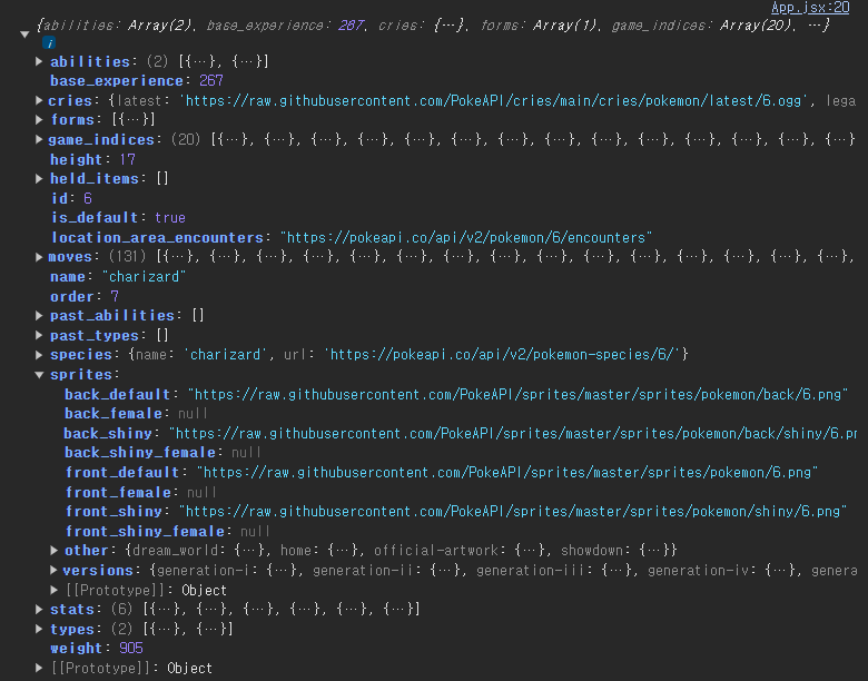 ๋ฐ์ดํฐ๋ฅผ ๋ฐ์์จ ์ํ๊ฐ ์๋๊ธฐ ๋๋ฌธ์ ๋๋ฌด๋๋ ๋น์ฐํ๊ฒ undefined๊ฐ ๋์๋ค.. ๋ค์ get ์์ฒญ ํ์ ์ฝ์๋ก ์ฐ์ด๋ณด๋ url์์ ์๋ pokemon data๋ฅผ ํ์ธํ ์ ์๋ ์ํ๊ฐ ๋์๋ค.