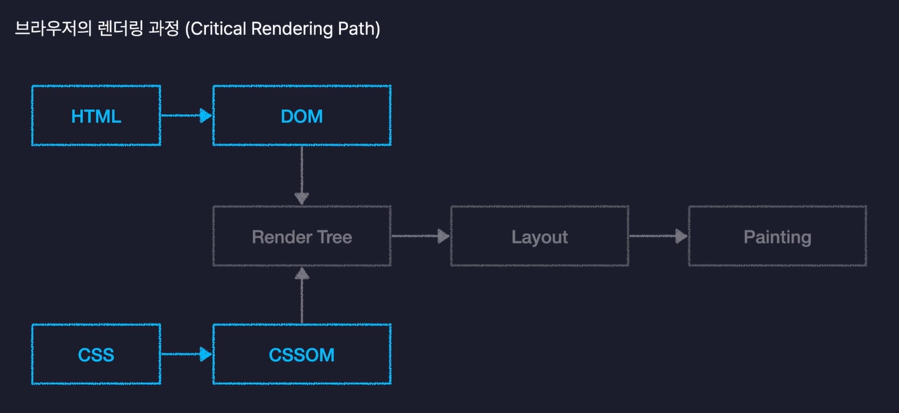 HTML과CSS가 객체모델로 변환이 되면서 두개를 합친 것을Render Tree라고 하는데 웹페이지의 청사진 또는 설계도라고 불린다 다음으로는Layout작업인데 웹페이지라는 공간 안에Render Tree에 포함되어 있는 요소들의 배치를 잡아 보는 작업이다 마지막으로Painting작업에서는 실제로 화면에 그려내는 과정을 말한다
