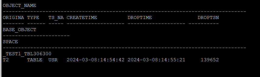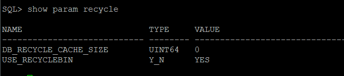 drop 한 테이블 확인 /recyclebin 테스트 + 파라미터 동적 변경