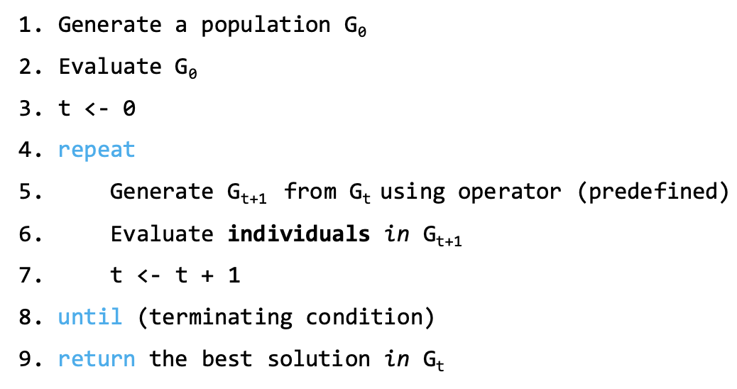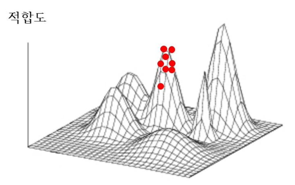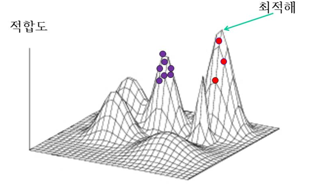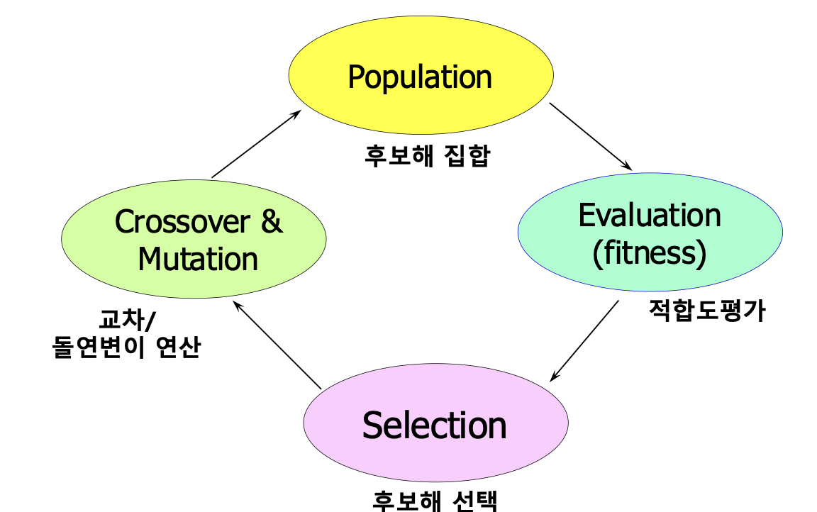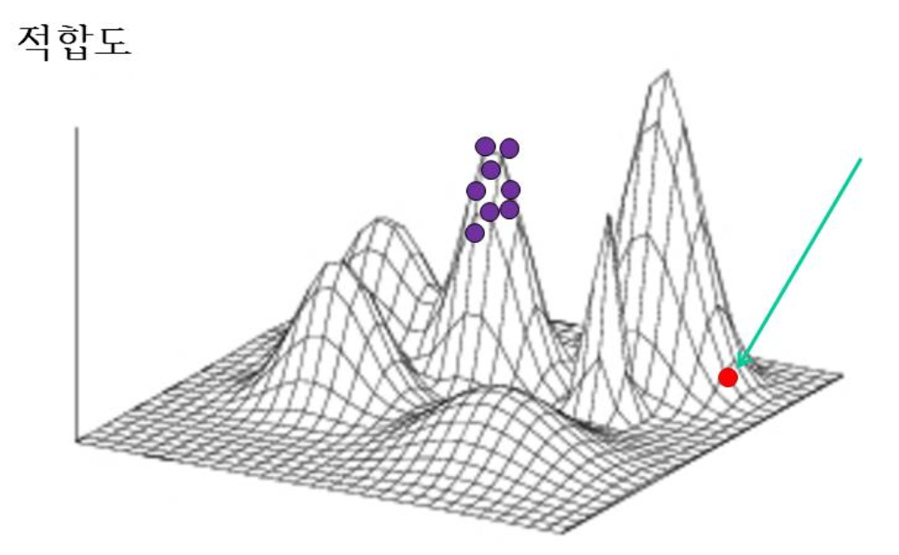 좋은 부분 구조를 가진 해들을 여러 개 유지하고, 그 사이에서 교차와 돌연변이 같은 연산으로 모의 담금질처럼 변형을 주되 집단 전체를 진화시키는 방법