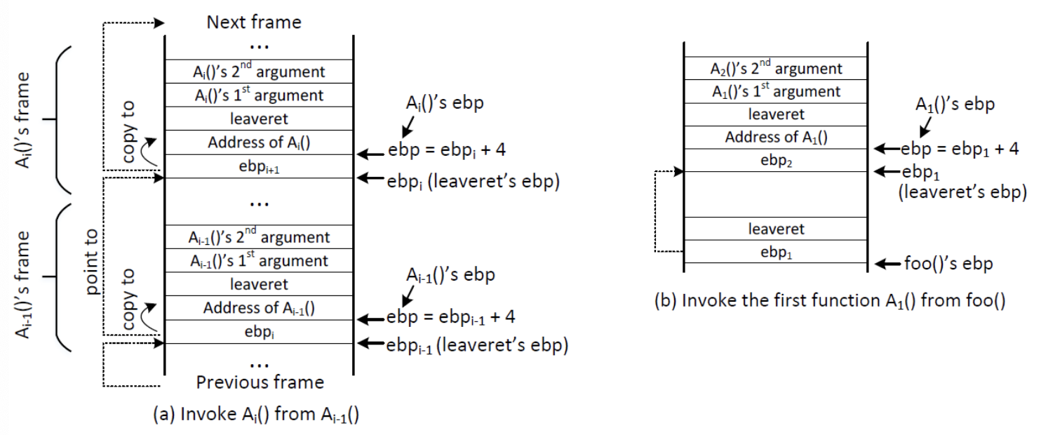 - B()는 라이브러리 함수라 내부에서 또 다른 함수를 호출하고, 그 호출한 함수들은 자신만의 prologue/epilogue를 가질 수 있다.