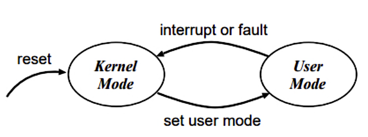 - Kernel mode can be enterd when a system call is invoked or a fault/interrupt occurs
