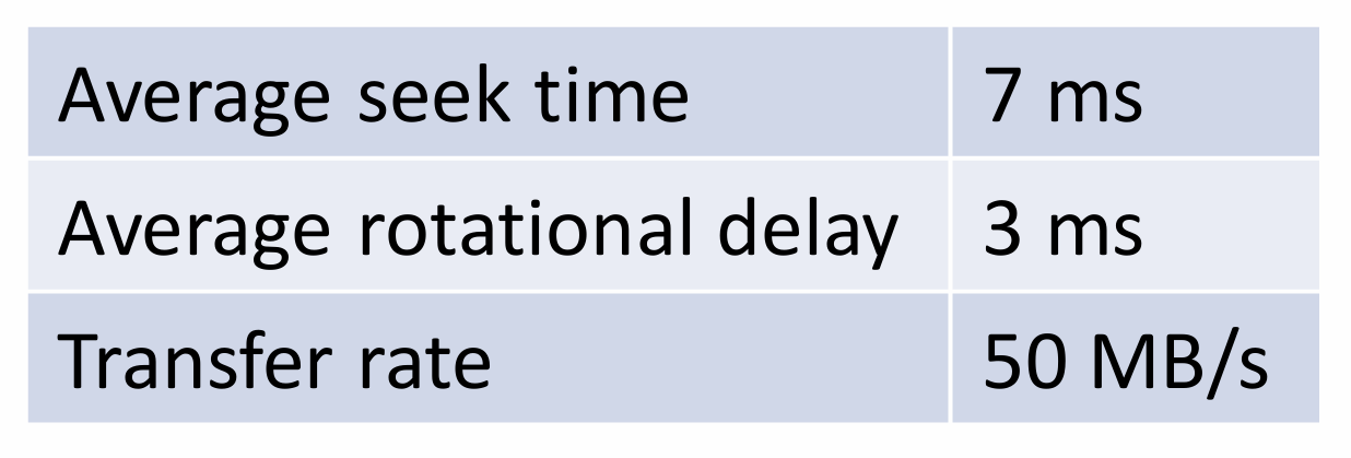 - On each access, need seek time and rotational delay