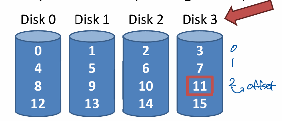 - 11 % 4 = Disk 3