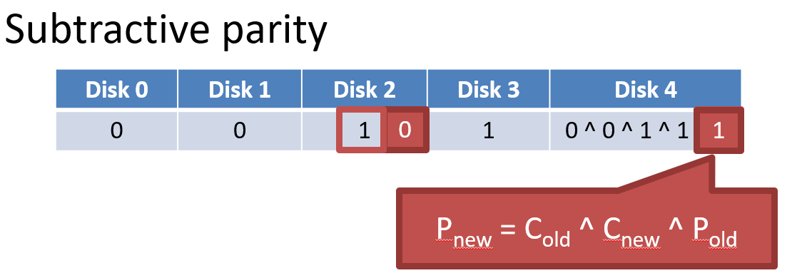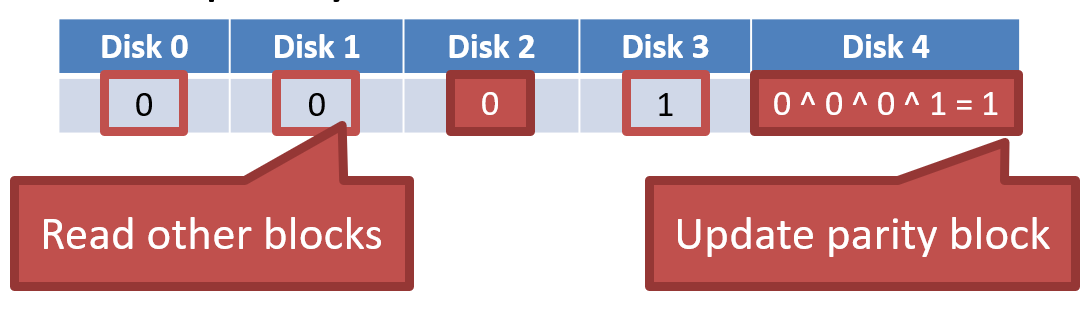 - stripe 단위이므로 한 parity bit만 update