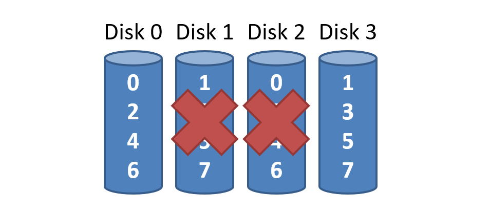 - Lucky -> N/2 drives can fail without data loss