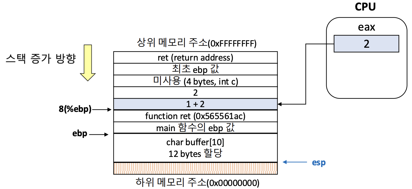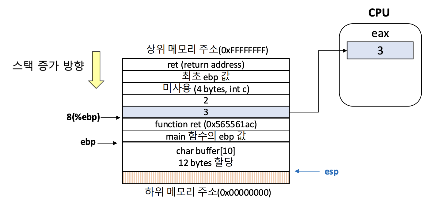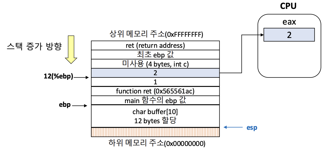 - 0xc(%ebp): ebp 레지스터 값 + 0xc(12 byte)