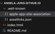 App Link를 적용할 때 applinks.json 파일을 생성했던 것과 마찬가지로 Universal Link에는 apple-app-site-assoiciation 파일을 생성해야 합니다.