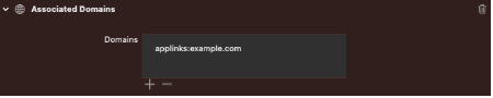 2) +를 누르고 applinks: web domain.web domain 형식에 맞춰 도메인을 넣어줍니다.