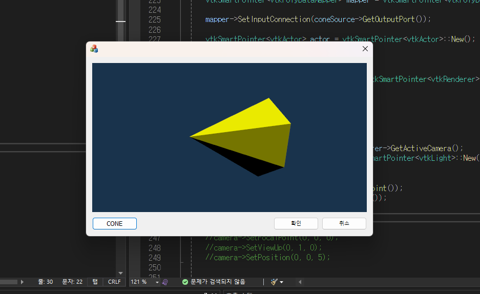 VTK 프로그래밍에 나와있는 예제를 하던 중, 다양한 오류가 발생하였다. 결론은