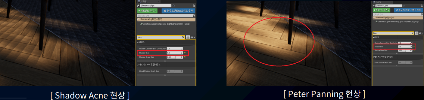 빛이 닿는 영역이 그림자 처리되는 현상Peter Panning
