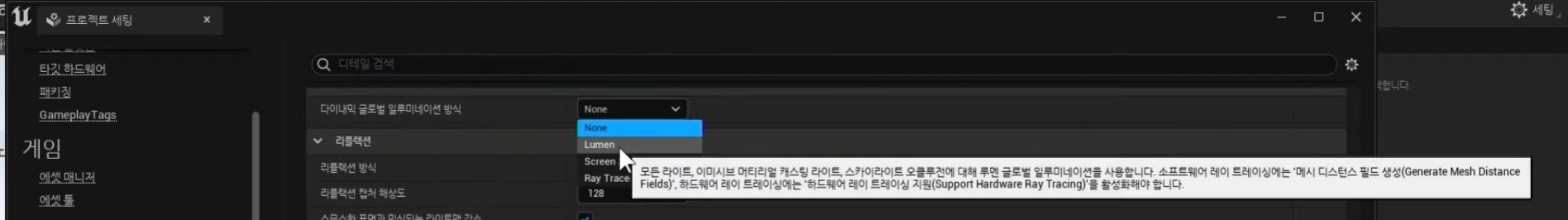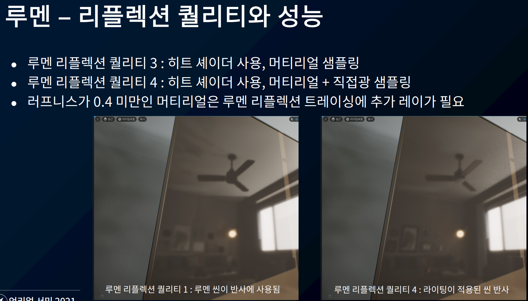 루멘 리플렉션 퀄리티를 높여 좀 더 사실적인 리플렉션을 볼 수 있음