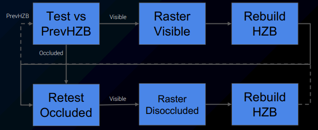 이전 프레임에 보였던 것들이 현재 프레임에서도 보일 가능성이 높다는 가정하에 2번의 패스에 걸쳐 진행
