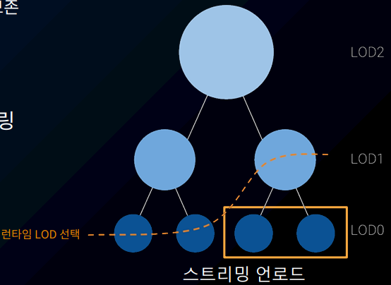 선택된 LOD만 스트리밍/언로드 되므로 메모리엔 화면에 보여줄 데이터만 올라가지만 장면 변화가 빠르거나 폴리곤 밀도가 높은 씬의 경우 고성능 디스크가 필요