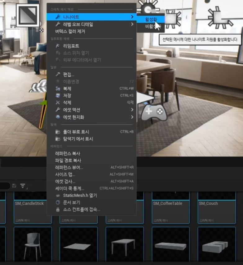 콘솔창에 "r.nanite 0"으로 나나이트 끌 수 있음