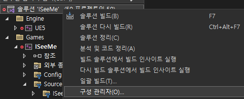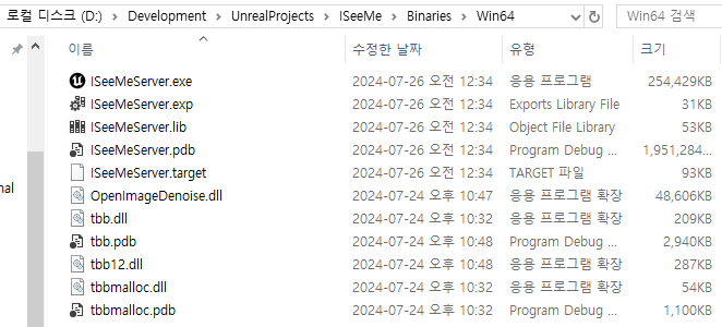 (프로젝트명).Target.cs 파일 내용을 복사하여 클래스 이름에 Server를 추가하고 TargetType을 Game에서 Server로만 바꿔주면 됩니다.// Copyright Epic Games, Inc. All Rights Reserved. using UnrealBuildTool; using System.Collections.Generic; public class ISeeMeServerTarget : TargetRules { public ISeeMeServerTarget(TargetInfo Target) : base(Target) { Type = TargetType.Server; DefaultBuildSettings = BuildSettingsVersion.V5; IncludeOrderVersion = EngineIncludeOrderVersion.Unreal5_4; ExtraModuleNames.Add("ISeeMe"); } }마찬가지로 (프로젝트명)Client.Target.cs 파일도 Server를 Client로만 변경해서 만들어줍니다.