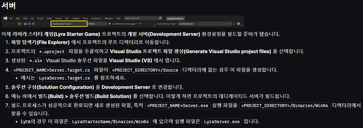 이 파일을 만들기 위해 LyraServer.Target.cs를 참고하라 하지만,