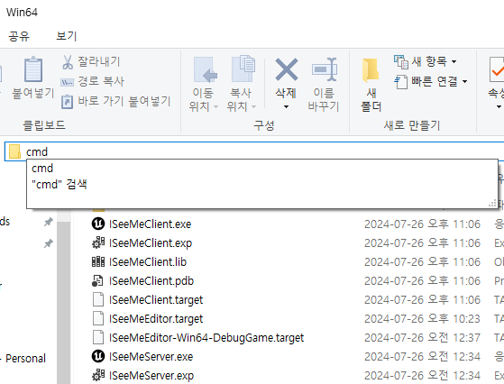 굳이 cmd 창을 열지 않고 exe 파일을 실행하고 싶다면 파일 탐색기의 주소창에 파일 이름과 파라미터를 입력하면 바로 실행됩니다.