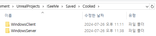 쿠킹이 완료되면 \Saved\Cooked\WindowsServer 폴더가 생성되는 것을 확인할 수 있습니다.