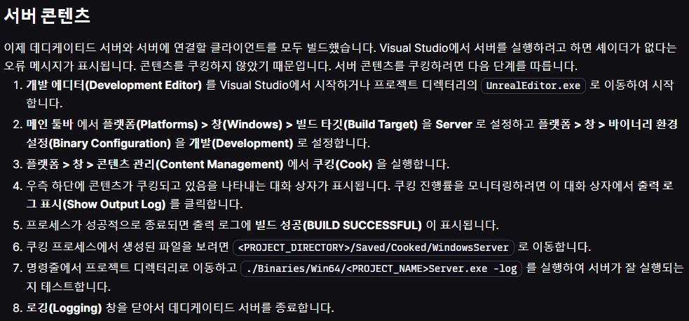 데디케이티드 서버 빌드를 하기 위해선 에픽게임즈 클라이언트로 받은 엔진으로는 빌드를 할 수 없습니다.