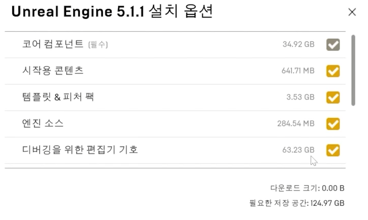엔진 코드 디버깅을 위해 디버깅 심볼 포함이 필요하다면 언리얼 엔진 설치 시 '디버깅을 위한 편집기 기호' 체크