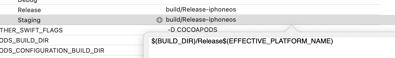 Info의 Configurations에 아래 플러스 버튼 → “Duplicate “Release” Configuration” → 이름 “Staging”으로 변경