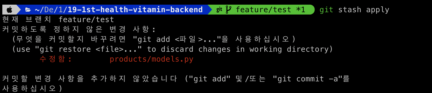 아까 stash list의 리스트 번호를 쓰면 특정 stash를 가져올 수 있다.
