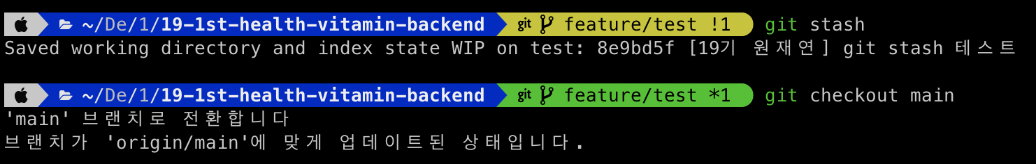 stash를 하면 제일 최근의 커밋내역으로 코드를 타임머신 태우고 저장되지 않은 내역은 stash라는 임시공간에 저장 해놓는 것!