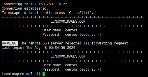 > ssh centos@192.168.250.110