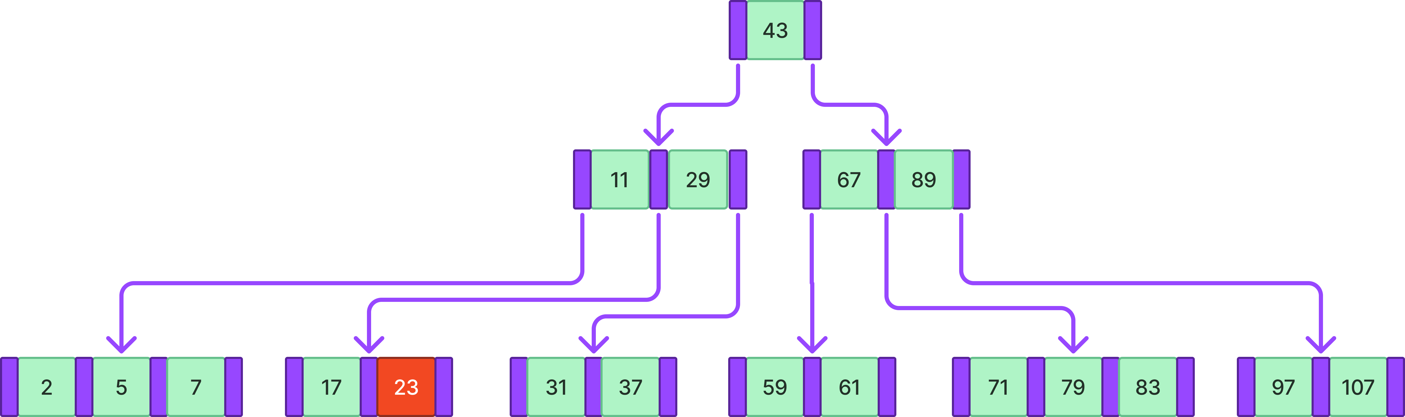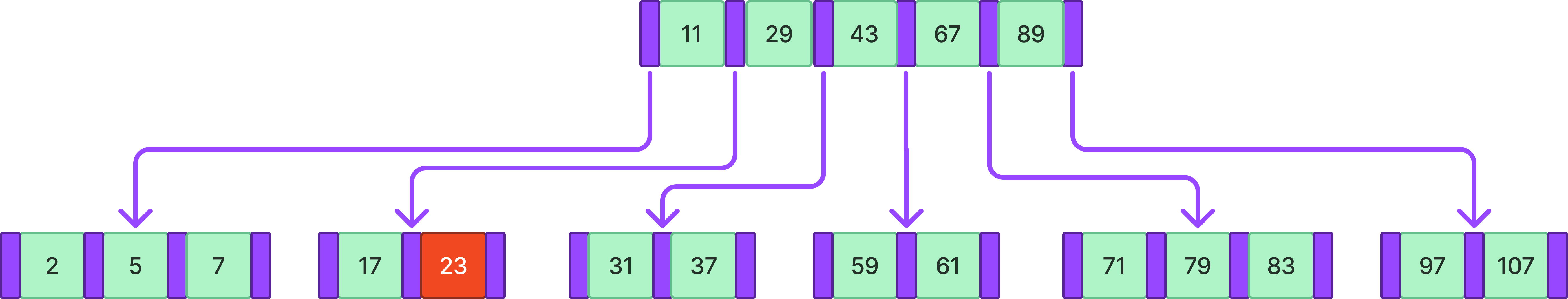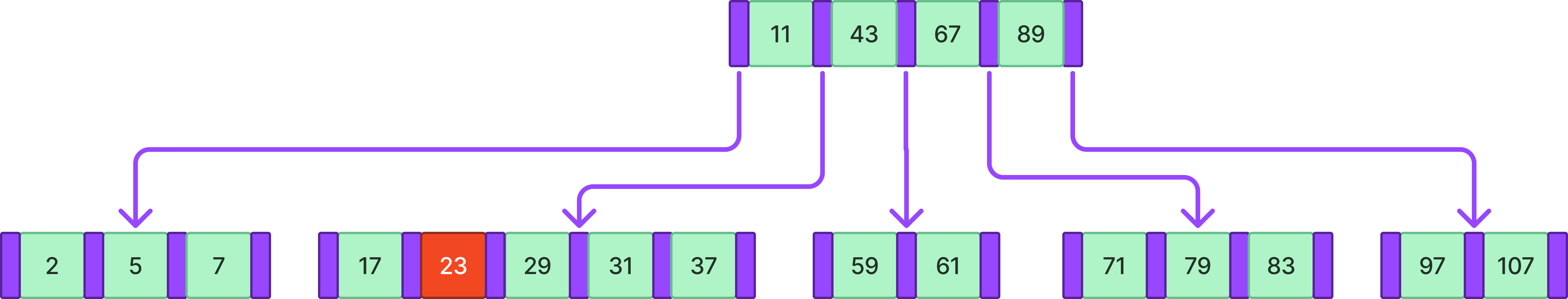 위와 같은 B-tree에서 71을 검색한다고 하자.