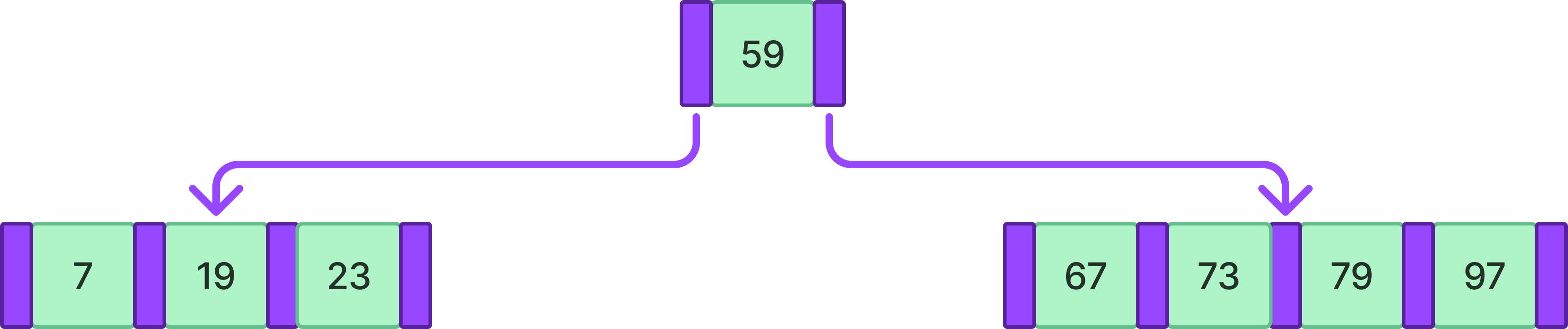 이진 탐색 트리의 경우 하나의 노드에서 최대 두 개의 자식 노드로 분화하기 때문에 이 두 자식 노드를 비교하는 키는 하나이다.