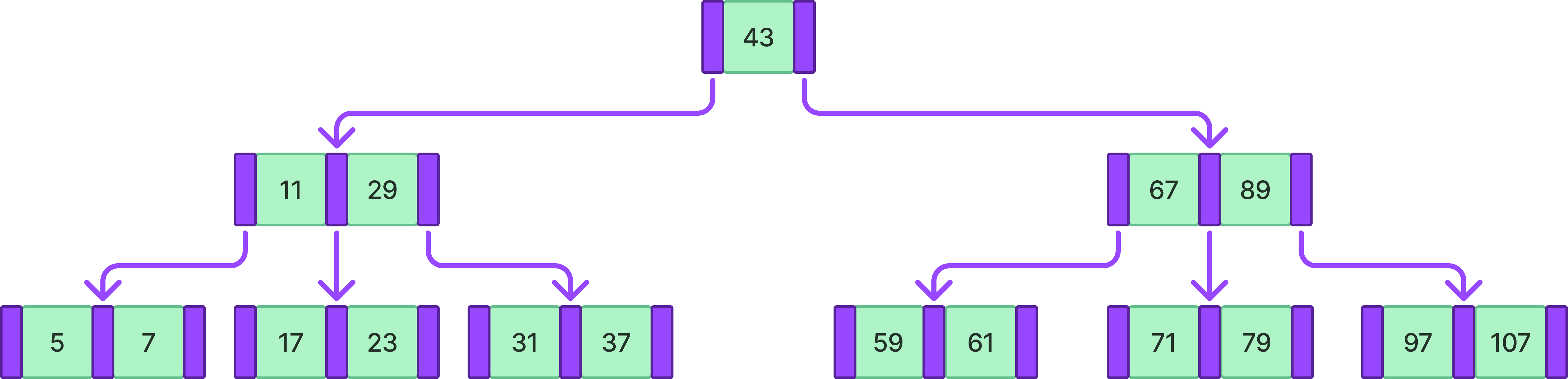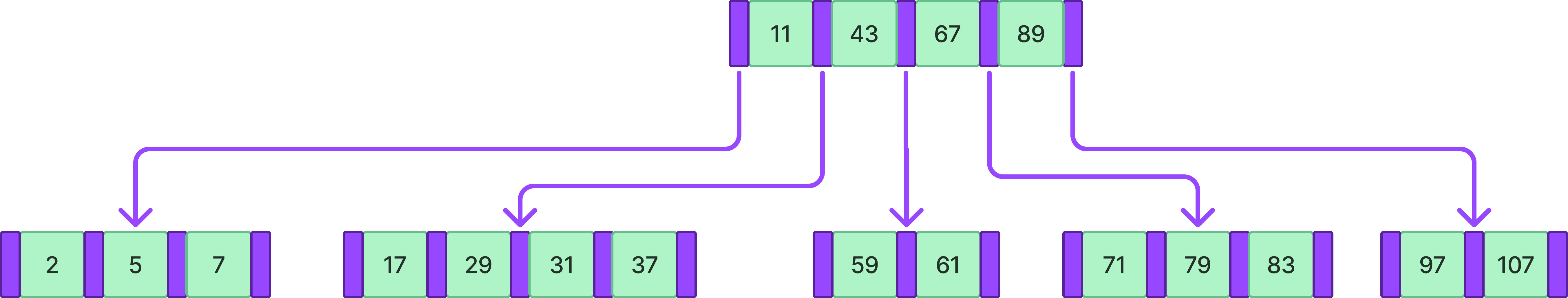 B-tree는 이러한 키를 2개 이상으로 설정한 자료구조이다.