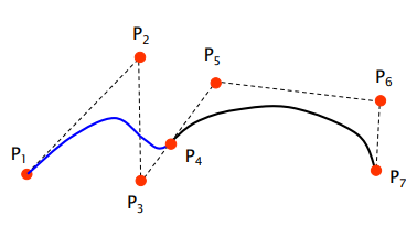 각각의 곡선 조각 는 매개변수형 3차 다항식으로 정의