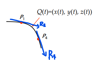 이들을 이용하여 4개의 식을 만들어내고 제약조건을 어떻게 만들어 내느냐에 따라 여러 형태의 곡선이 정의된다.