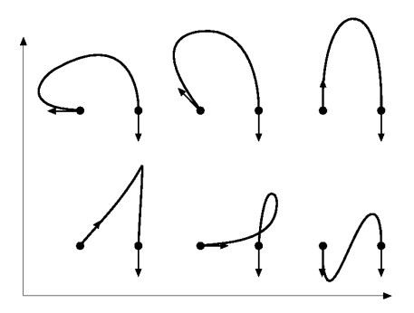 끝점, tangent vector, 연속 조건 존재