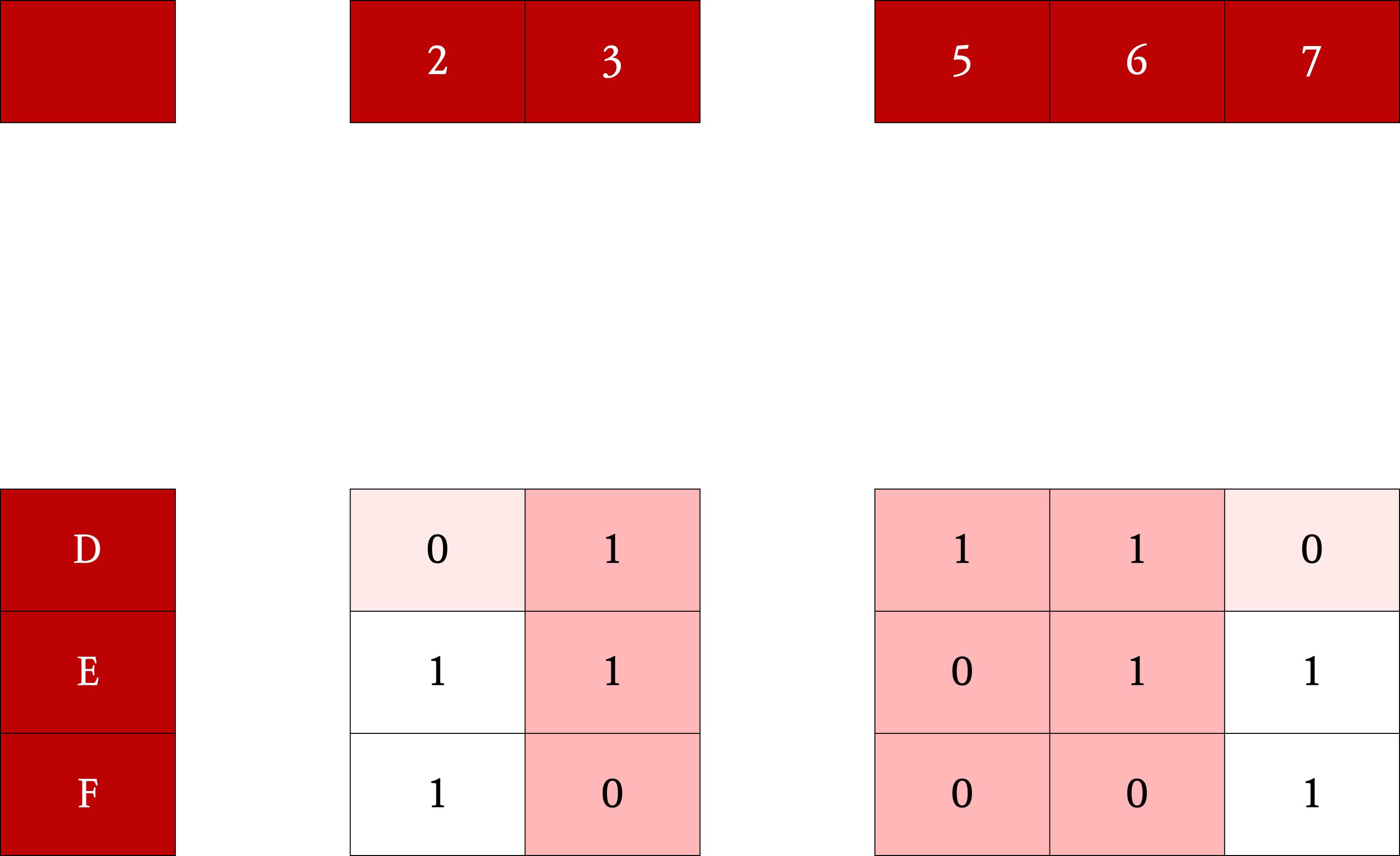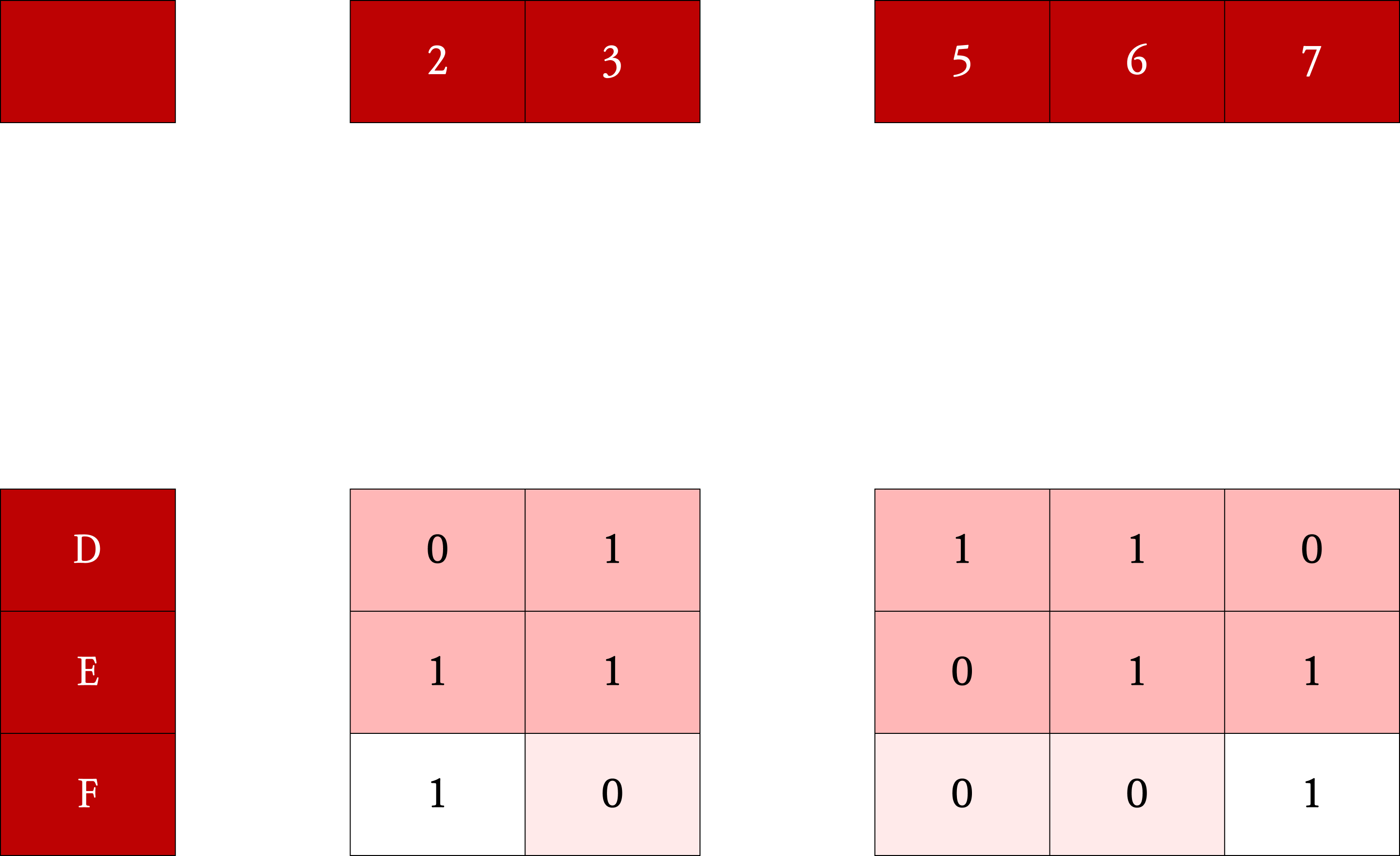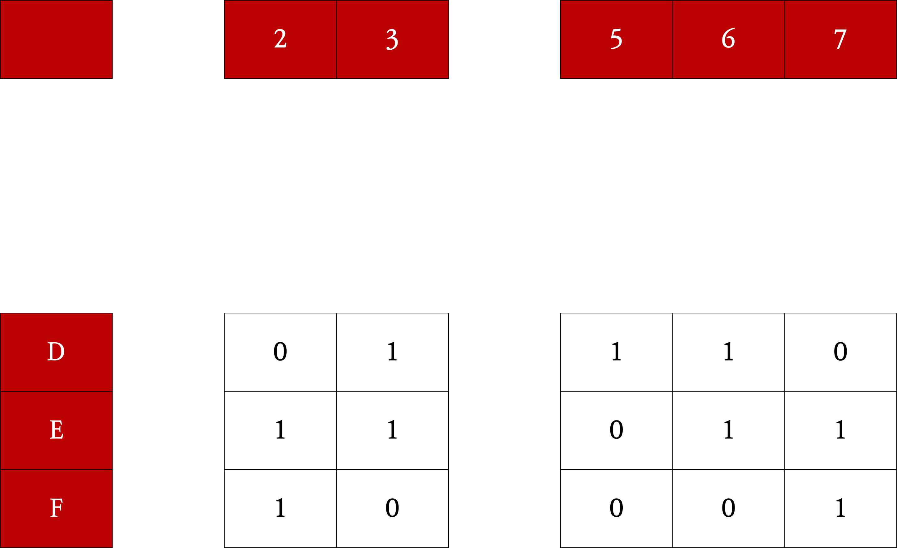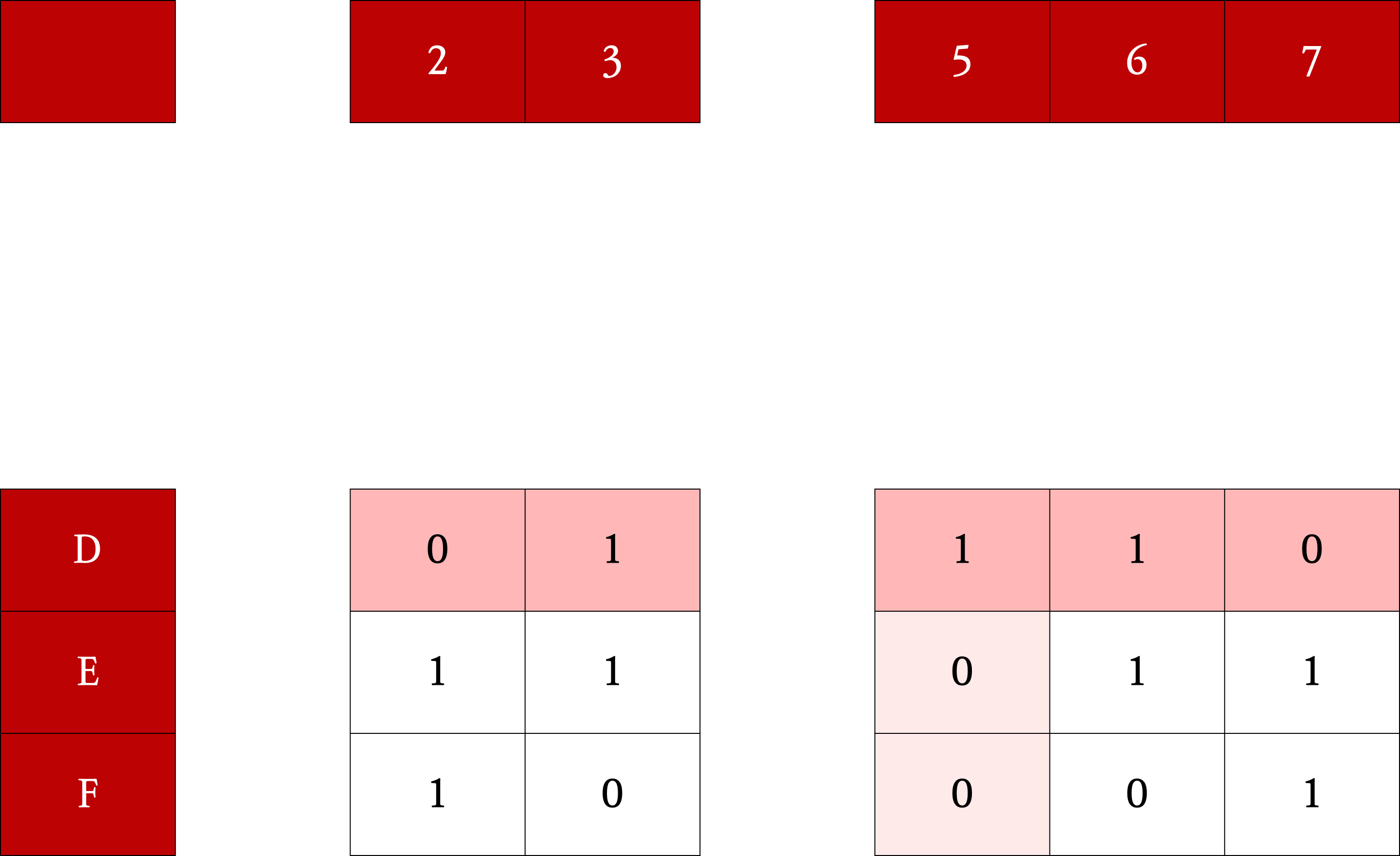3에서 선택한 행에서 1이 속한 열을 모두 제거한다.