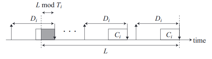 hbf(Οiβ,L)=max(0,βTiβLβDiβββ+1)ΓCiβ=dbf(Οiβ,L)Γviβ1β(2) μ΄λ CiβΓviβ μ§μ¬κ°νμ λλΉ(μκ° μΆ)μΌλ‘ μκ°ν μ μλ€