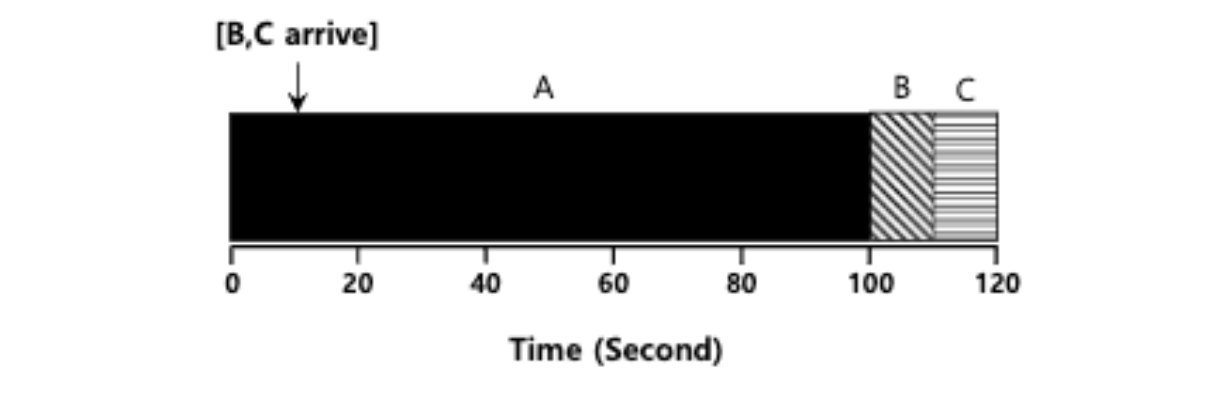 - 그리고 이 방식을 SJF에 방식이 STCF(Shortest Time-to-Completion First)이다.