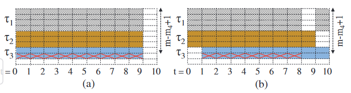 μ΄ κ²½μ°λ Example 1κ³Ό λκ°μ΄ schedulableν΄μΌ νμ§λ§ miβ+mjβ>10μΈ κ²½μ°κ° μμΌλ―λ‘ Lemma 4λ₯Ό μ΄μ©ν΄μλ κ²μΆ ν μ μμ΅λλ€.