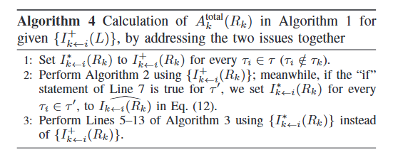 - λ¨Όμ Algorithm 2μ κΈ°μ΄μΈ Theorem 3μμλ βΟiββΟβAkβiβ(Rkβ)μ μμ ν upper boundλ₯Ό ꡬνκΈ° μν΄ κ° Ikβi+β(L)μ λνμ¬ duration constraintλ₯Ό μ μ§ν λκΉμ§ κ°μ₯ ν° miβλ₯Ό μ νν©λλ€.
