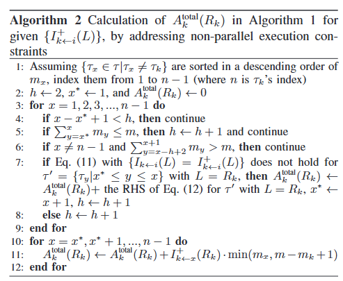 Algorithm 1μ Line 6μ Algorithm 4λ‘ λ체νκ³ , Ikβi+β(L)λ₯Ό μ (7) λλ (8)λ‘ λ체νλ€λ©΄, κ°κ° FPμ EDFμ λν schedulability testλ₯Ό μνν μ μλ€.