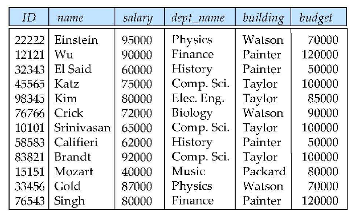 - inst_dept에서 dept_name은 후보키가 아니지만 budget은 dept_name에 의존함.