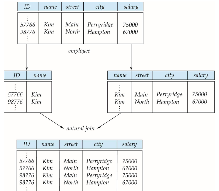 - 우리는 다시 원래 relation을 복구할 수 있어야 함.
