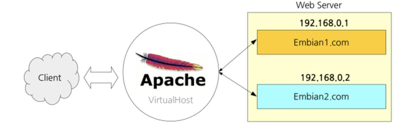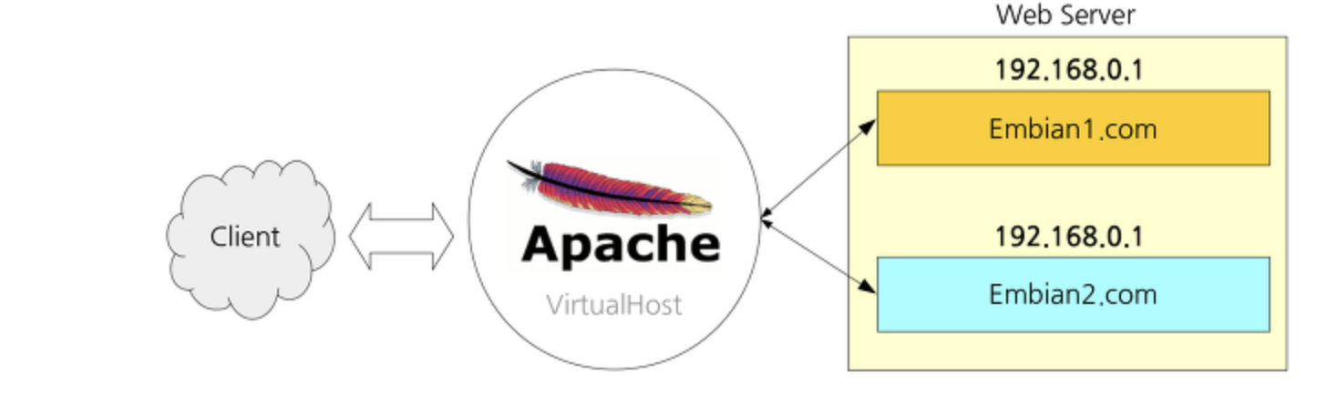 웹 서버에서 실행되는 여러 웹 사이트가 같은 IP 주소에 연결되어 있는 경우, 각 웹 사이트를 구분하기 위해 가상 호스트 기술이 사용