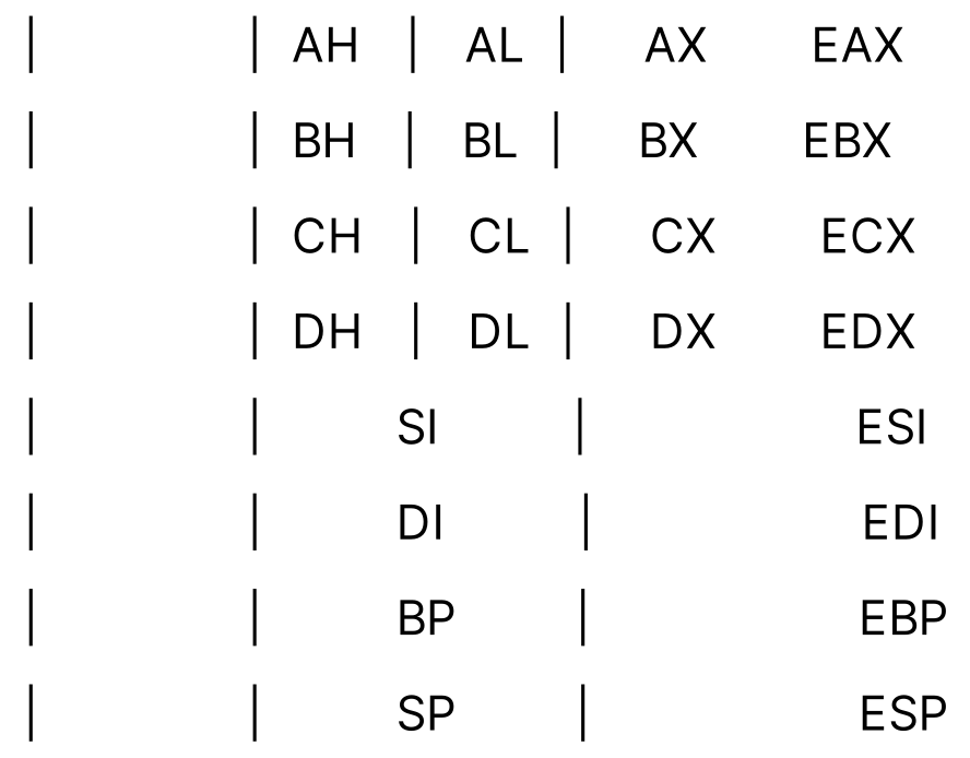 피연산자 : 명령어의 피연산자로 레지스터, 숫자, 문자, 메모리 주소 등이 올수있다