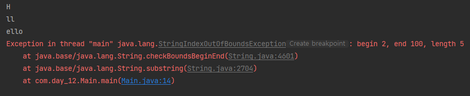 System.out.println(text.substring(2, 100)); // 범위를 벗어나면 오류생김.